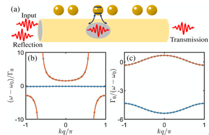 In recent years, researchers have explored how to exploit topological properties to design and manipulate the behavior of light, leading to the gradual development of the emerging field of topological photonics. Early efforts in topological photonics primarily focused on simulating topological models and quantum states from condensed matter physics. Due to the unique properties of photonic systems, they can go beyond simple simulations of topological quantum states. For instance, adding gain to a photonic topological insulator can enable the realization of topological insulator lasers with superior properties such as enhanced monochromaticity, emission efficiency, and stability. Understanding the influence of topological properties on the interaction between light and atoms will pave the way for the development of topologically protected photonic devices, quantum communication, and quantum information processing. The waveguide quantum electrodynamics system, as shown in Figure (a), is a hybrid quantum system where waveguides are coupled to atoms, exhibiting strong interactions between light and atoms. It serves as an ideal platform for studying quantum topological states and photon scattering. However, in the waveguide quantum electrodynamics system, the presence of photon scattering leads to the splitting of energy bands into two discontinuous branches, as depicted in Figure (b), rendering conventional topological band theory inapplicable. There is an urgent need to develop new theories to investigate topological quantum states in waveguide quantum electrodynamics systems.