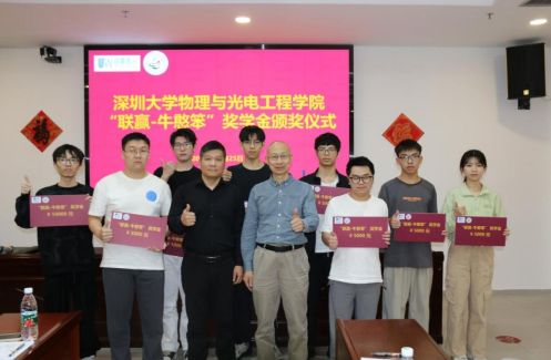 On March 25th, the award ceremony for the “Lianying-Niu Hanben” Scholarship of the College of Physics and Optoelectronic Engineering at Shenzhen University was successfully held in Conference Room 1101, Zhiyuan Building. The event was attended by Mr. Lu Guojie, Deputy General Manager of Shenzhen Lianying Laser Co., Ltd. (hereinafter referred to as “Lianying Laser”), Mr. Lin Bing, Secretary of the Party Committee of the College of Physics and Optoelectronic Engineering (hereinafter referred to as “the College”), Ms. Long Xiaoli, Deputy Secretary of the Party Committee, faculty representatives, and nine award-winning students.