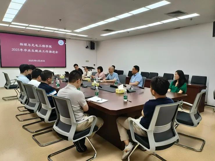 To thoroughly implement the university’s decision-making and deployment on graduate employment work and fully promote high-quality and full employment for the 2025 graduating class, the College of Physics and Optoelectronic Engineering held the 2025 Graduate Employment Promotion Meeting in the Zhiyuan Building Conference Room on the afternoon of April 28. Attendees included Lin Bing, Secretary of the College Party Committee; Liu Liwei, Executive Dean; Wu Honglei, Vice Dean; Long Xiaoli, Deputy Secretary of the Party Committee; Wang Jipu, Vice Dean; heads of various departments; graduate class teachers; and counselors.