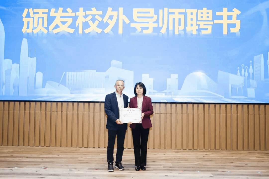 In the subsequent award ceremony, Liu Liwei presented an external mentor appointment letter to Wei Feng. Wei Feng and Liu Guideong (the Vice Secretary-General of the Alumni Association) jointly presented the “Innovative Star” trophy and certificate to the students who won the silver award in the 2025 China International College Student Innovation Competition National Finals.