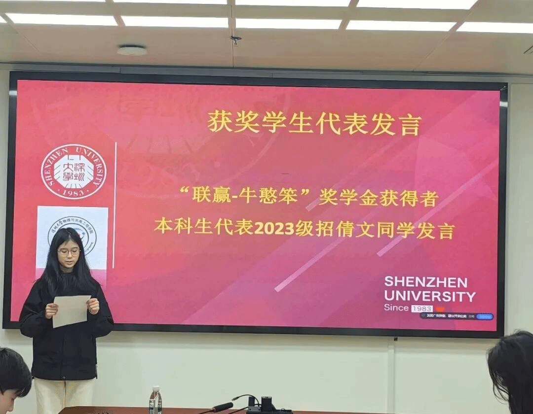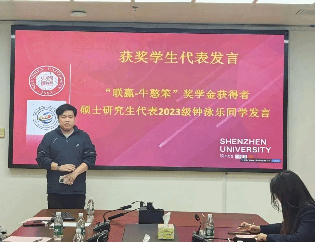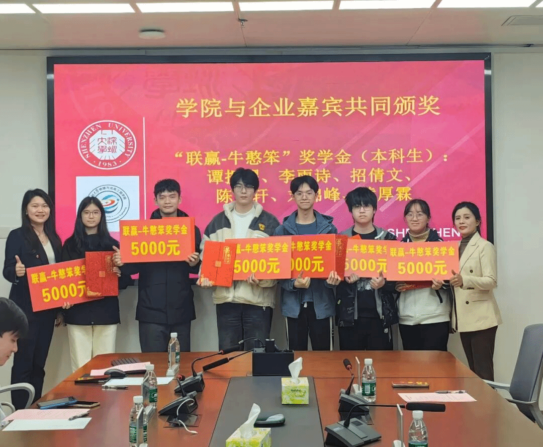 On January 21, 2026, the awarding ceremony of the 2025 LienYing - Niu Hanben Scholarship of the College of Physics and Optoelectronic Engineering was grandly held in Conference Room 1421 of Zhiyuan Building. Luo Meiling, Marketing Manager of Shenzhen LienYing Laser Co., Ltd. (hereinafter referred to as “LienYing Laser”), together with representatives of the college including Lin Bing, Secretary of the Party Committee, Professor Wen Qiao, Vice Dean, Lin Na, Deputy Secretary of the Party Committee, Lei Lei, Director of the Department of Optical Information Engineering, Cai Houzhi, Director of the Department of Intelligent Sensing, and Zeng Xuanke, representative of head teachers, as well as all scholarship-winning students attended the ceremony.