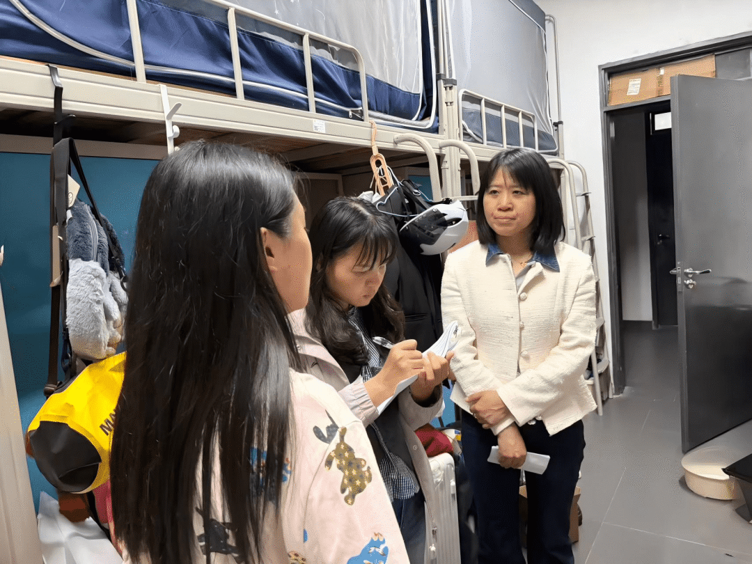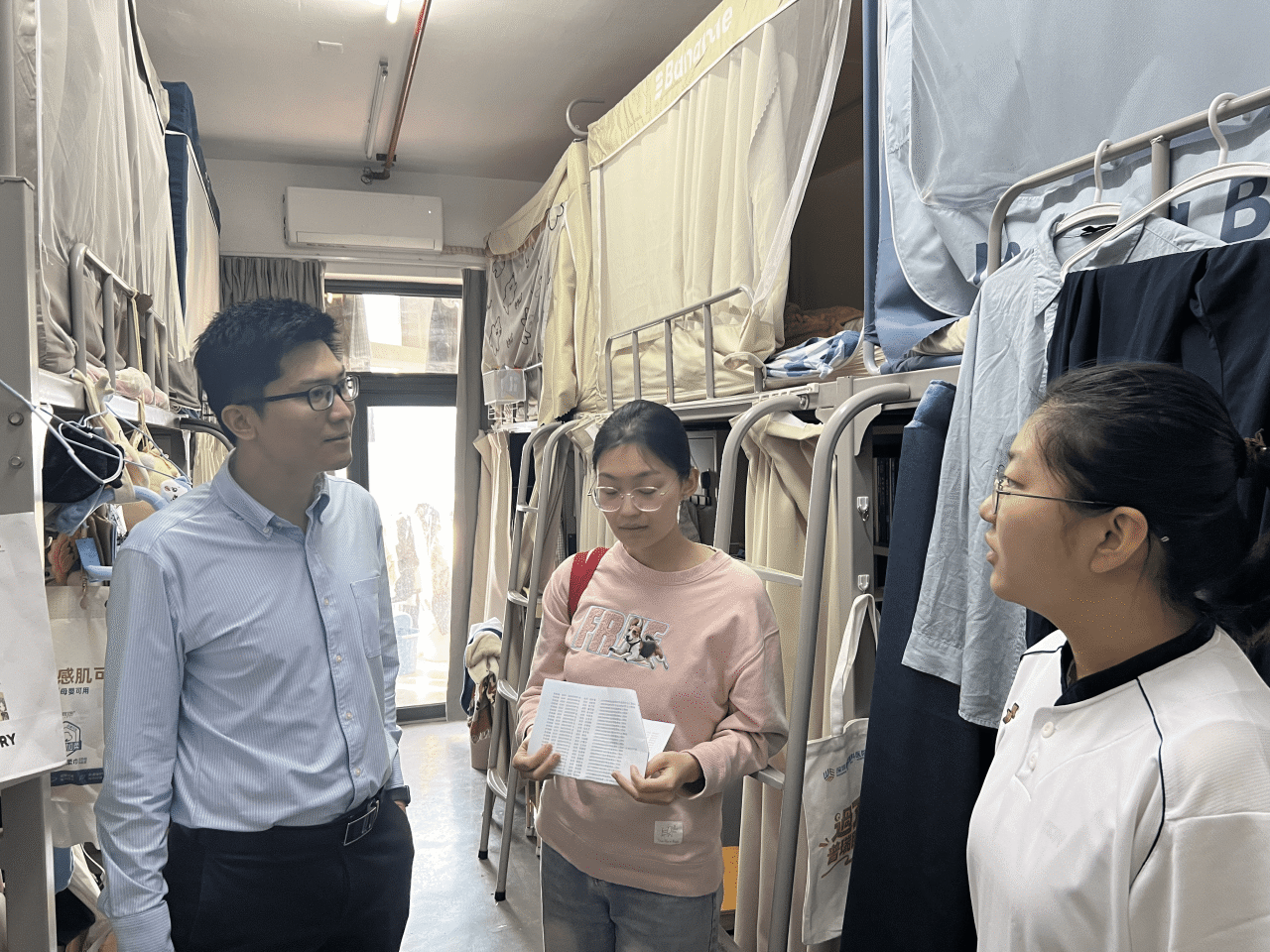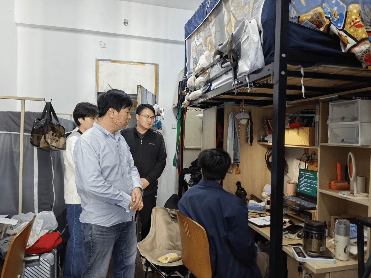 Executive Vice Dean Liu Liwei, along with counselors Li Huilin and Huang Yongzhen, focused on visiting the graduate students’ dormitories. They deeply understood the adaptation of students from different grades sharing dorms and their relationship, inquired carefully about the study and research progress of students in joint programs, and ensured their living conditions were supported. For third-year graduate students about to graduate, Liu Liwei expressed care for their thesis writing progress and the challenges they faced, as well as their employment situation. He congratulated those with clear progress and offered warm encouragement and support to those still striving.