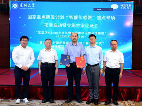 2024年5月30日,国家重点研发计划“智能传感器”重点专项项目启动暨实施方案论证会在深圳顺利召开。我院王义平教授主持了该专项项目“宽温区MEMS光纤多物理量敏感元件及传感器”,何俊教授主持了该专项青年科学家项目“蓝宝石光纤微纳传感器激光加工新工艺研究”。国家科技部高技术中心专项主管张雷和董祉序、深圳市南山区科技创新局四级调研员何贤佳、深圳市特发信息股份有限公司董事长高天亮、深圳大学科学技术发展研究院副院长李亚运、物理与光电工程学院常务副院长刘丽炜、项目专家组成员、项目顾问专家成员、各任务负责人和参与单位代表均出席了本次启动会。
