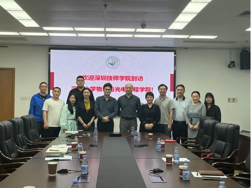 3月24日上午,深圳技师学院中德智造学院院长彭旭昀、智能光电技术教研室主任孙智娟、工业互联网与大数据应用教研室主任罗飞、机电一体化技术教研室主任崔晓钢、综合办公室主任史可丽一行来物理与光电工程学院交流访问,物理与光电工程学院党委副书记林济霖、研究生辅导员林娜及博士生代表等出席交流会,对彭院长一行来访表示热烈欢迎。此次会议由研究生辅导员林娜老师主持。