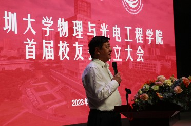 林兵首先向各位领导、嘉宾和校友的到来表示欢迎,对负责学院校友会筹备工作组的辛勤工作表示感谢。林兵回顾了建校40年以来深大取得的突出建设成就以及校友对深圳市发展的巨大贡献,简要介绍了学院基本情况,指出学院不仅师生规模大,并且师资力量强、学科层次高、产学研能力强,表示学院将继续扎实做好学院工作,四大学科全面发力,进一步提升学科水平。林兵强调校友会是校友与母校之间的纽带,并以四字短语“缘分所至,精诚以加,相知相爱,相携想成”精炼概括学院校友会创办初衷,希望广大物光校友,“关心母校,支持母校,理解母校”,为学院校友会和学校发展出谋划策,一同“凝星聚力”,为深圳大学建设世界一流综合性大学和社会主义标杆大学贡献力量。
