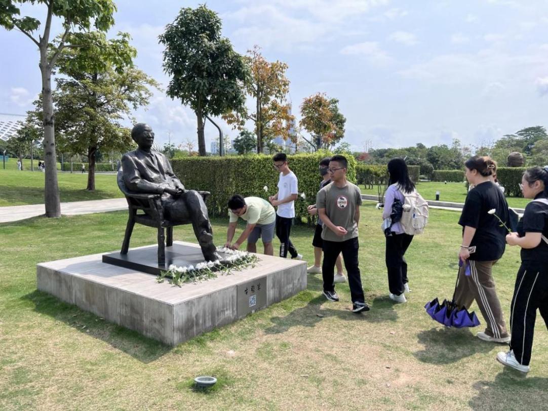 春风和煦,天清气朗。会议结束后,青马营开展了一次“行走的思政课”。学员们依次为牛憨笨院士雕像献花,随后参观了人才星光桥以及全国科普教育基地——深爱人才馆。
