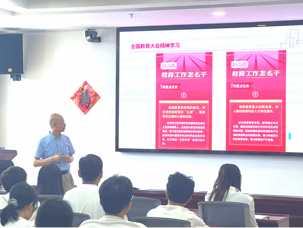 首先,林兵传达了全国教育大会的重要精神。他表示,教育部在会上提出了“加强教育系统党的建设,深化党的创新理论‘三进’,落细落实立德树人根本任务。”等七项重点任务,物光学院结合学院工作实际、分析发展形势,以40周年院庆文艺汇演、青马筑梦营等特色活动为载体,构建物光“大党建”格局。
