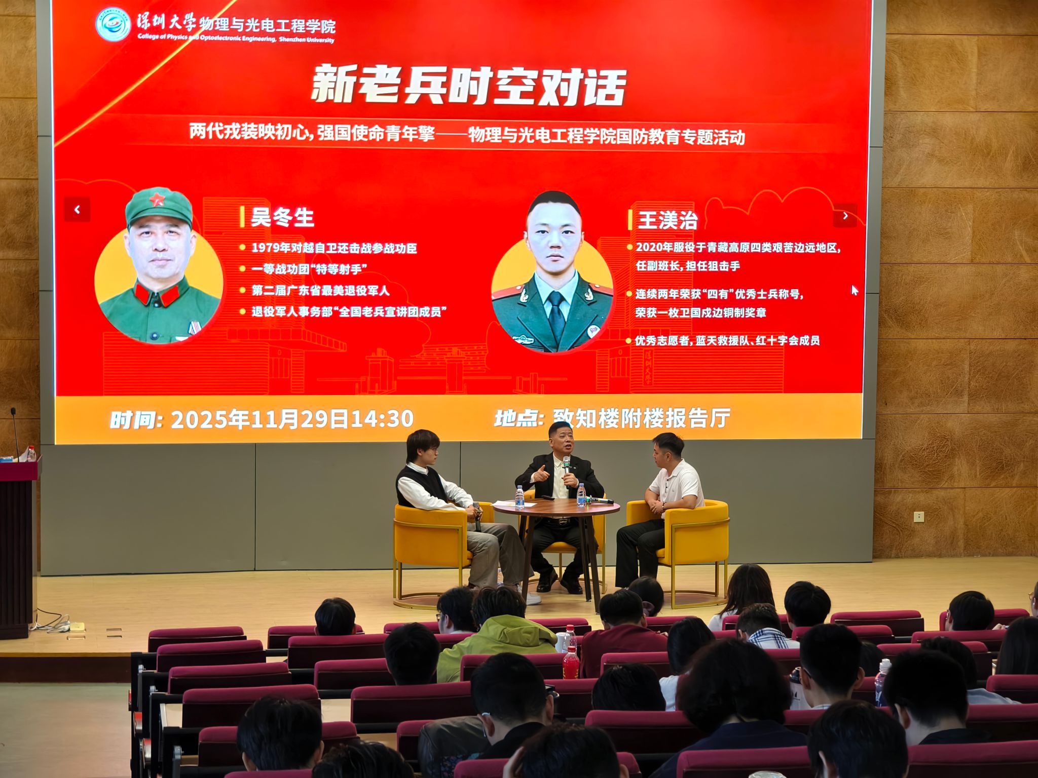 学子们纷纷表示,这场跨越时空的对话让国防意识深植心中。此次活动既是一堂生动的国防教育课,更是一次深刻的初心洗礼,激励着深大物光学子以青春之力传承红色血脉,为强国强军事业贡献专业力量。